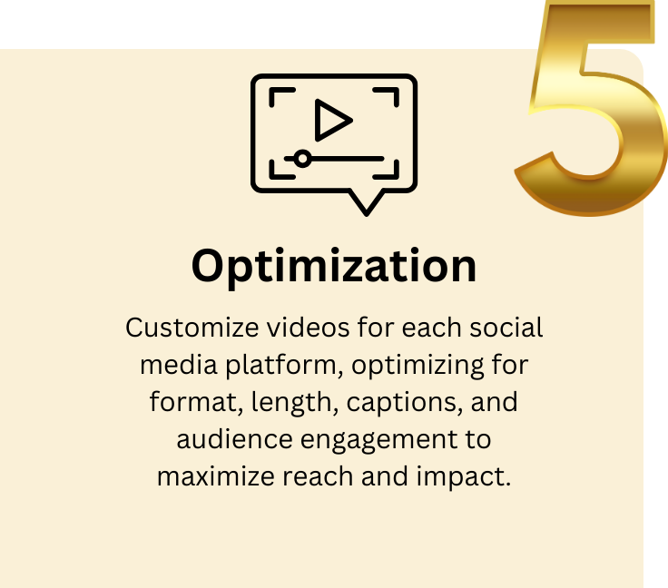 Optimize video posts for each platform by adjusting format, resolution, length, and adding relevant tags, captions, and descriptions.